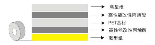 以聚酯薄膜為基材,涂與高性能的壓敏膠(丙烯酸膠粘劑或橡膠型膠粘劑),具有優異的粘接性。