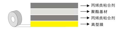 基材是聚酯薄膜,因此膠帶厚度均勻性優質,加工性,操作性優質。